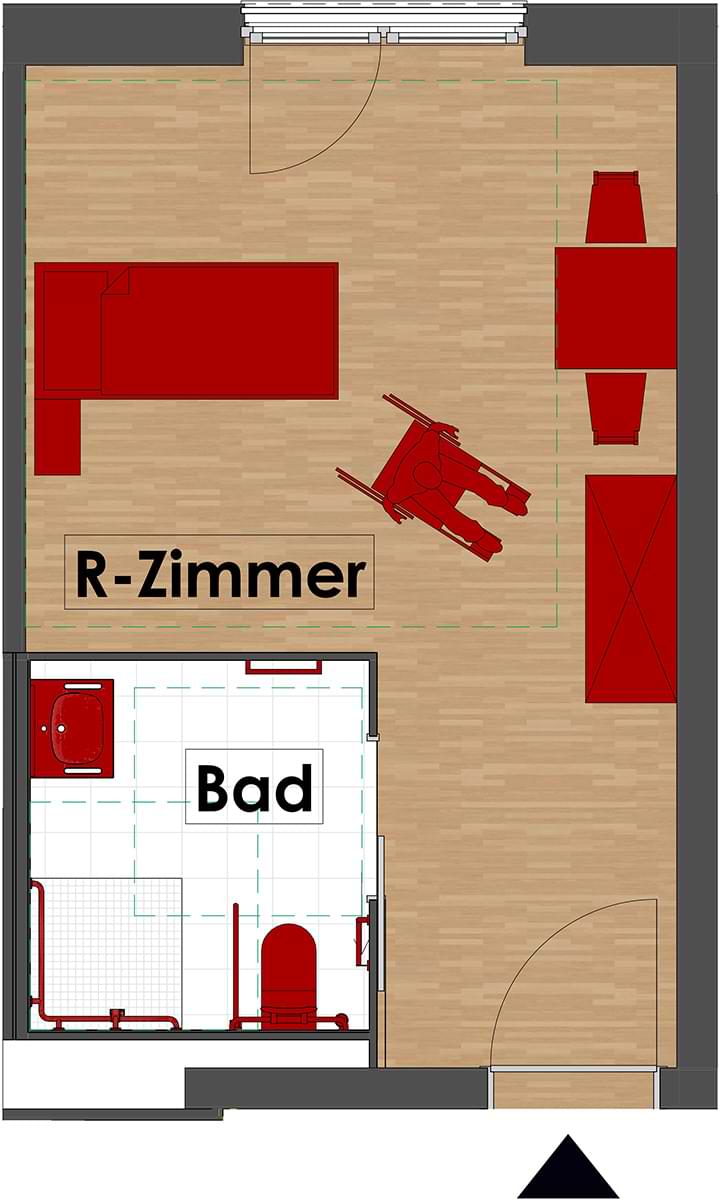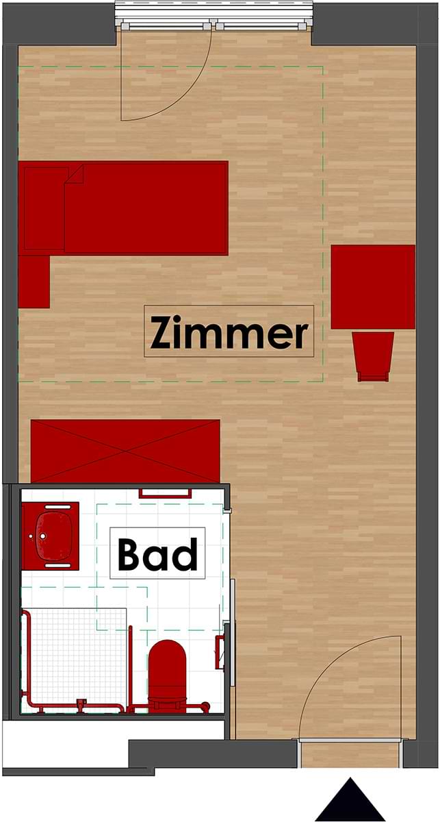 Die Zimmer bzw. Rollstuhlzimmer verfügen über eine Größe von 24 m² bis 28 m².